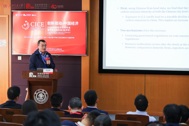 复旦大学二级教授、世界经济研究所副所长樊海潮分享了题为“Dirty Trade War: The Effects of Trade War on Carbon Emission”的研究成果。以中美贸易摩擦为外生冲击,他发现,中美贸易摩擦显著增加了城市和企业层面的碳排放强度。两种机制推动了这种影响:其一,城市为应对冲击放松了环境规制;其二,原出口导向型企业转向国内生产后的资源重新分配。基于税收调查数据的定量分析,他进一步探讨了贸易摩擦对中国、美国及全球福利的影响,并揭示了贸易政策与碳排放之间复杂的相互作用关系。