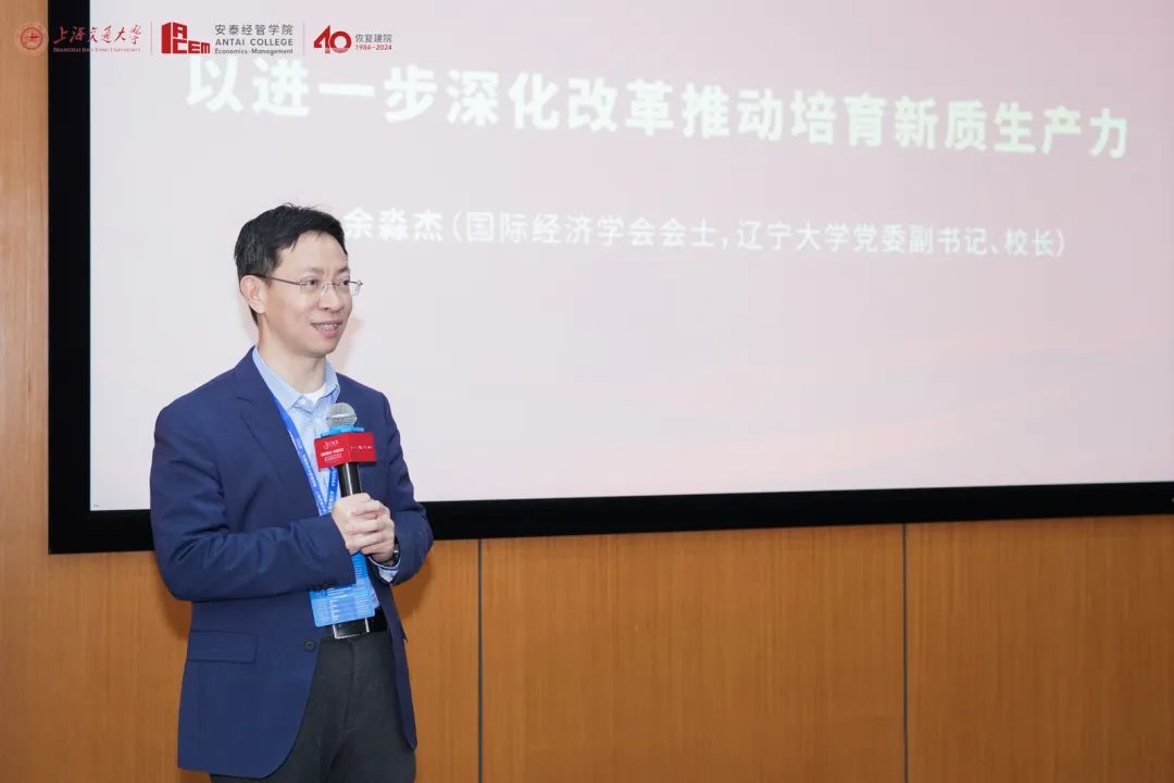 国际经济学会会士,辽宁大学党委副书记、校长余淼杰作了题为“以进一步深化改革推动培育新质生产力”的特邀报告。他从当前国际上面临的人口老龄化和“逆全球化”势力抬头两个深层次挑战着手,分析了构建新发展格局是应对中美经贸摩擦的重要途径,更是加速形成国内统一大市场的重要举措。鉴于中国外贸占GDP约1/3的现状,他强调了在国内统一大市场建设过程中,应重点关注资本、土地、人力资本和数据等要素市场统一,并以降低交易成本、利用大数据监督、信息化公共部门权力和优化营商环境等作为主要途径。他还指出,尤其需要重视通过创新性配置要素、技术革命性突破、产业深度转型升级来培育新质生产力。面对“逆全球化”冲击,全球价值链结构的变化既带来了挑战,也创造了机遇。这主要体现在全球价值链链条变短后促使市场重新整合分配,促进产业集聚,中国在教育、科技、人才领域的迎头赶上,新型举国体制优势显现,以及中国遵循的和平发展理念深入人心。他提出更加注重出口目的国的多元化、扩大对美国产品进口、高质量共建“一带一路”、增强经济韧性则是有效应对中美经贸摩擦的主要途径。