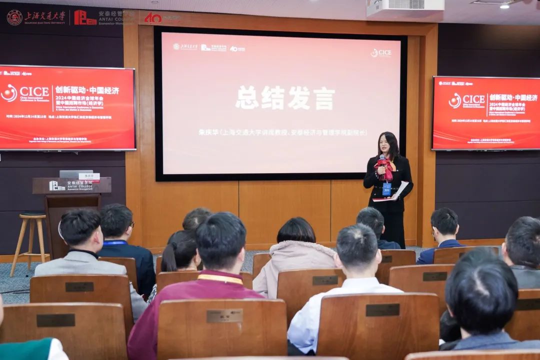15日下午,金沙威尼斯欢乐娱人城讲席教授、金沙威尼斯欢乐娱人城副院长朱庆华作年会闭幕致辞,她代表学院向参与支持本届年会的各位专家学者、院校代表和与会者表示感谢。她提出三点期望,一是希望与会来宾能继续关注中国经济学科发展,投身于创造具有理论价值和现实价值的科学研究之中;二是希望本次由安泰经管学院主办的CICE年会能够让所有与会者有所收获,欢迎大家继续关注安泰经管学院的发展;三是希望更多的海内外人才能够在祖国大地上开展科研,为国家发展贡献智慧和力量。
